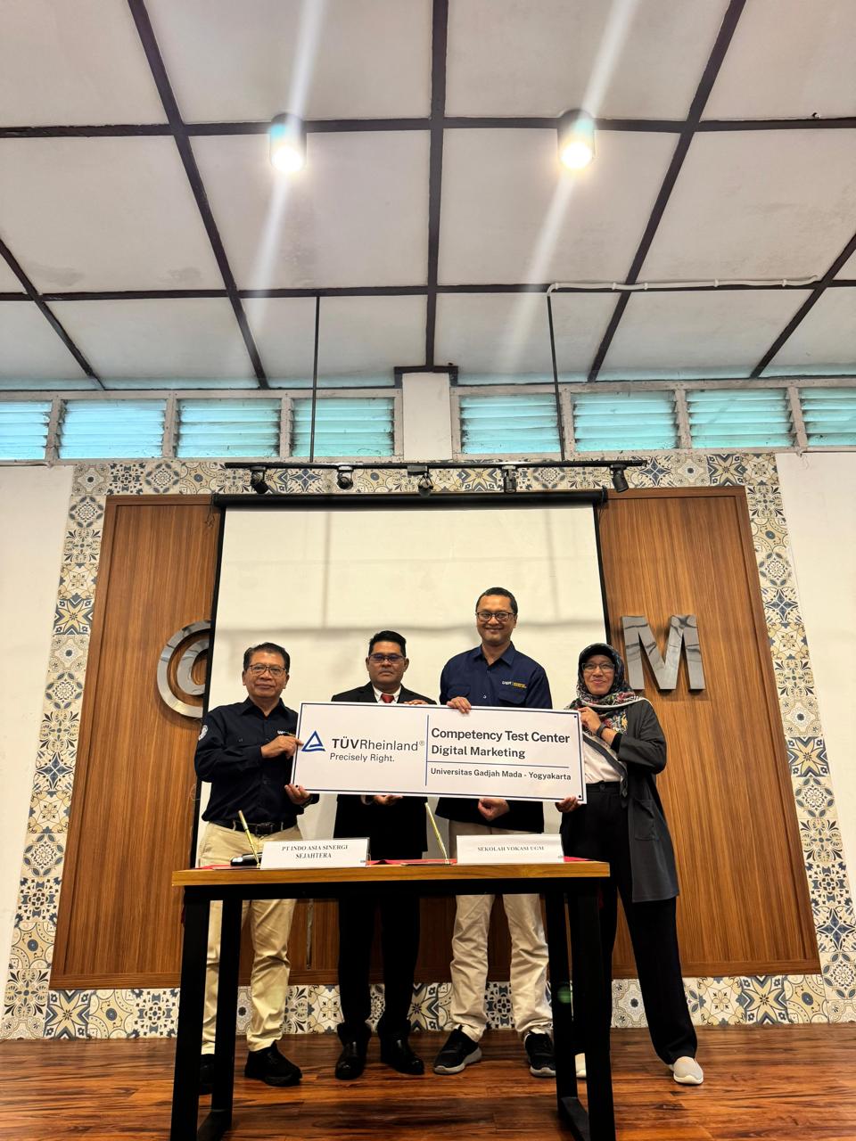 Yogyakarta, Rabu, 19 November 2025 — Kerja sama antara Sekolah Vokasi Universitas Gadjah Mada, PT Indo Asia Sinergi Sejahtera sebagai Authorized Training Partner TUV Rheinland melalui Indo Asia Academy, dan TUV Rheinland Indonesia resmi melahirkan satu pusat uji kompetensi baru di lingkungan SV UGM. Melalui seremoni Penandatanganan Memorandum of Understanding (MoU), Departemen Bahasa, Seni, dan Manajemen Budaya (DBSMB) SV UGM ditetapkan sebagai Competency Test Center (CTC) TUV Rheinland untuk skema Digital Marketing serta Public Speaking & Communication. Kegiatan berlangsung di lingkungan departemen dan dihadiri oleh pimpinan fakultas, perwakilan lembaga sertifikasi internasional, serta tim Indo Asia.