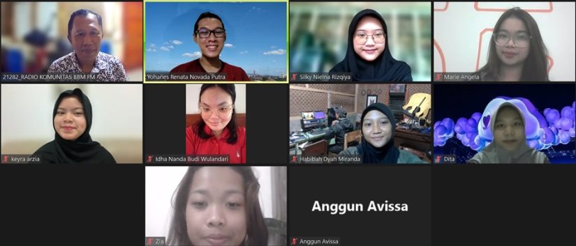 Yogyakarta (29/1) – Tim Radio Mahasiswa Sekolah Vokasi UGM sukses mengadakan script workshop bagi anggota tim yang baru bersama dengan Radio Komunitas BBM FM secara online beberapa waktu lalu (13/1). Andhi Wisnu Wicaksono S.S, salah satu pengurus Radio BBM FM dan seorang profesional dalam bidang pers dan jurnalistik, hadir sebagai pemateri dalam kegiatan ini. Selain meningkatkan kemampuan pembuatan script atau naskah kepenyiaran anggota Tim Radio, acara ini merupakan suatu upaya berkomunitas untuk mengimplementasikan SDGs Pendidikan Berkualitas dan Industri, Inovasi dan Infrastruktur. Acara juga dihadiri oleh Dr. Dewi Cahya Ambarwati, dosen DBSMB SV UGM dan sekaligus Koordinator Center of Excellence in Culture and Tourism (CoE CT) yang mengawali kegiatan kepenyiaran bekerjasama dengan industri komunikasi dan informatik sejak akhir tahun 2022.
