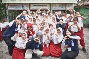 Gambar 2. Mahasiswa World Friends Korea bersama siswa siswa SDN Karangwuni